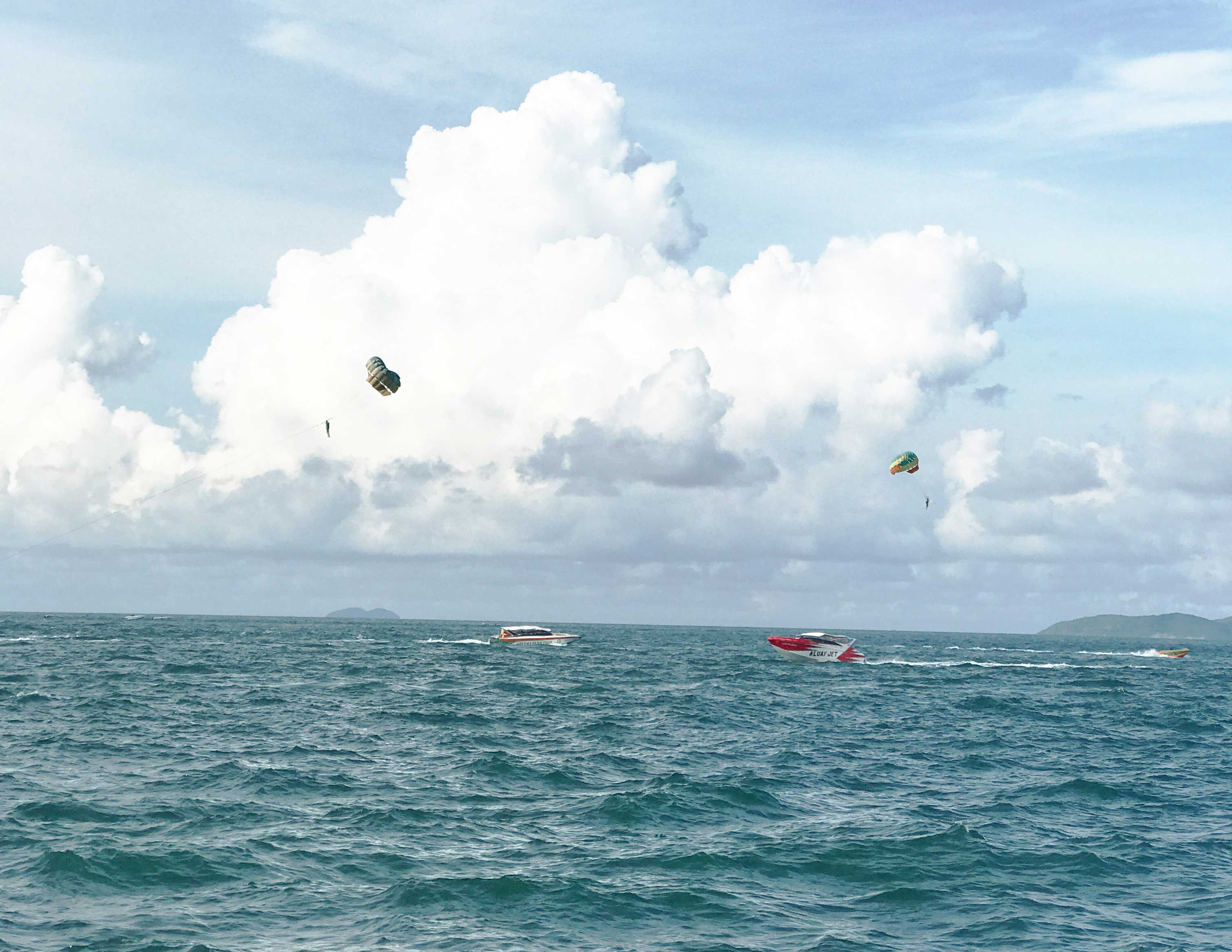 关于海和天,这一次的记忆主要是在泰国芭堤雅。芭堤雅号称「东方夏威夷」,海滩阳光明媚,蓝天碧水,沙白如银,椰林茅亭,小楼别墅掩映在绿叶红瓦之间,一派东方热带独特风光,令人心旷神怡。天空是每个国家都有的,但并不是每一个国家都能时常看到蓝天。海洋拥有的国家少些,当然拥有的也不是每一个都能看到碧海。坦率的说,泰国的天不是我看过最蓝的,海却是我看过最清的(当然我见过的海也没几个)。蓝天和碧海是大自然最美的馈赠,他们是免费的,但免费才是最贵的,小时候在农村看到蓝天太容易,从不觉得蓝天珍贵,如今难得一见,才深深感受到,原来「免费的才是最贵」的。